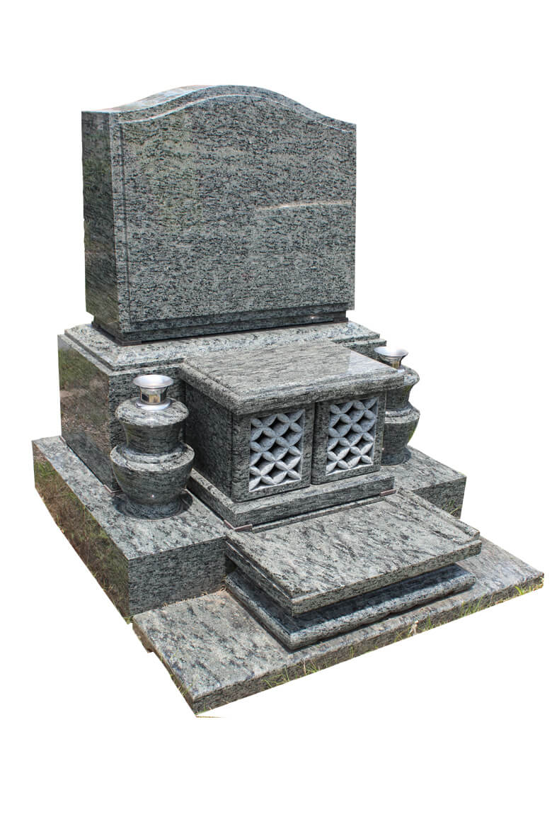 洋墓・デザイン墓 30006 オリーブグリーン洋墓タイプ 展示: 国分寺町店展示場 石種: オリーブグリーン 産地: 南アフリカ産 寸法: 間97㎝×奥104㎝×高105㎝ 標準価格1,000,000円(税別) 字彫り+免震施工+据付工事代を含む 特別価格880,000円(税別) 【期間限定のキャンペーン特価】字彫り+免震施工+据付工事代を含む
